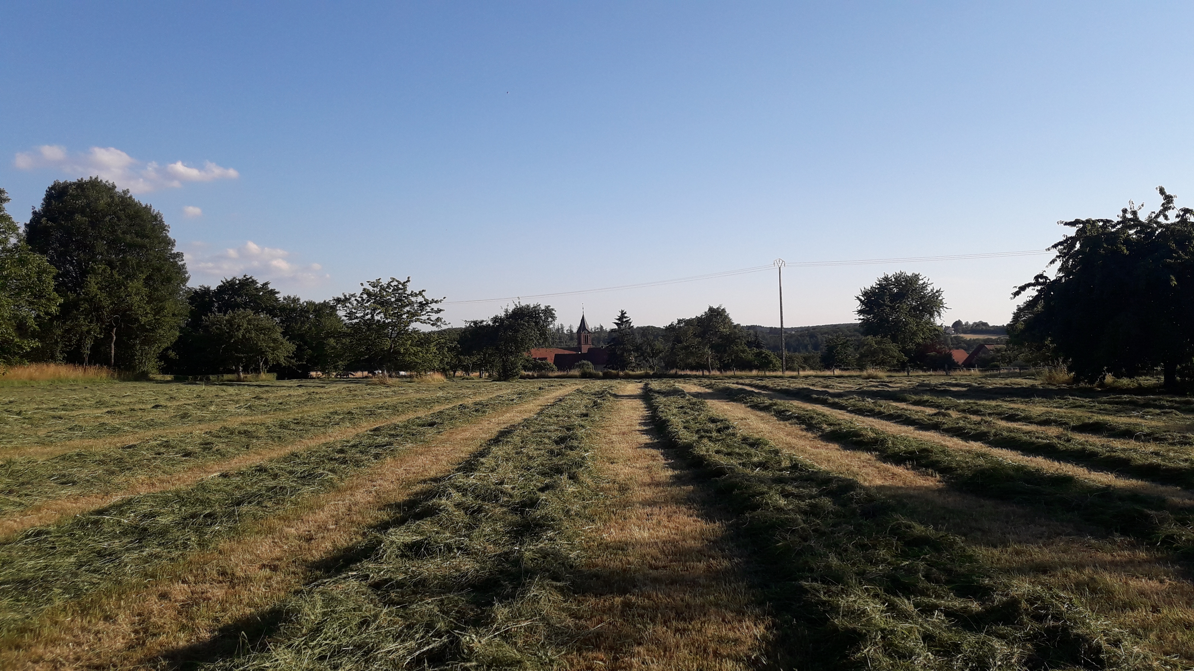 Ci-dessus, je t’ai mis quelques photos prises depuis la future ferme: finalement, le défi principal sera de recréer de nombreux éco-systèmes, puisque la prairie actuellement n’accueille qu’une biodiversité limitée… Nous avons la chance d’être plutôt en haut de vallée, légèrement en altitude ( plus de 400m d’altitude, sur le plateau lorrain).