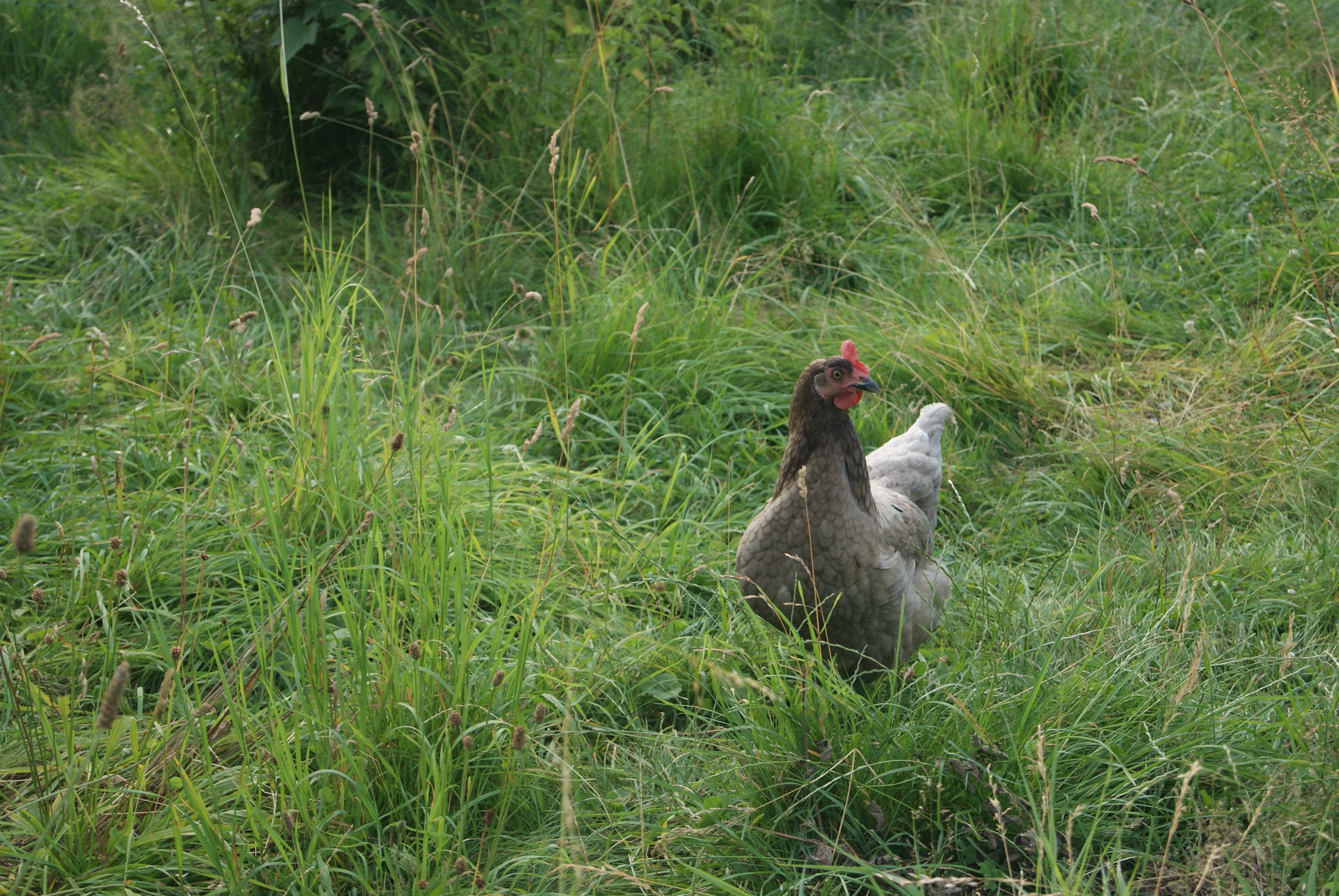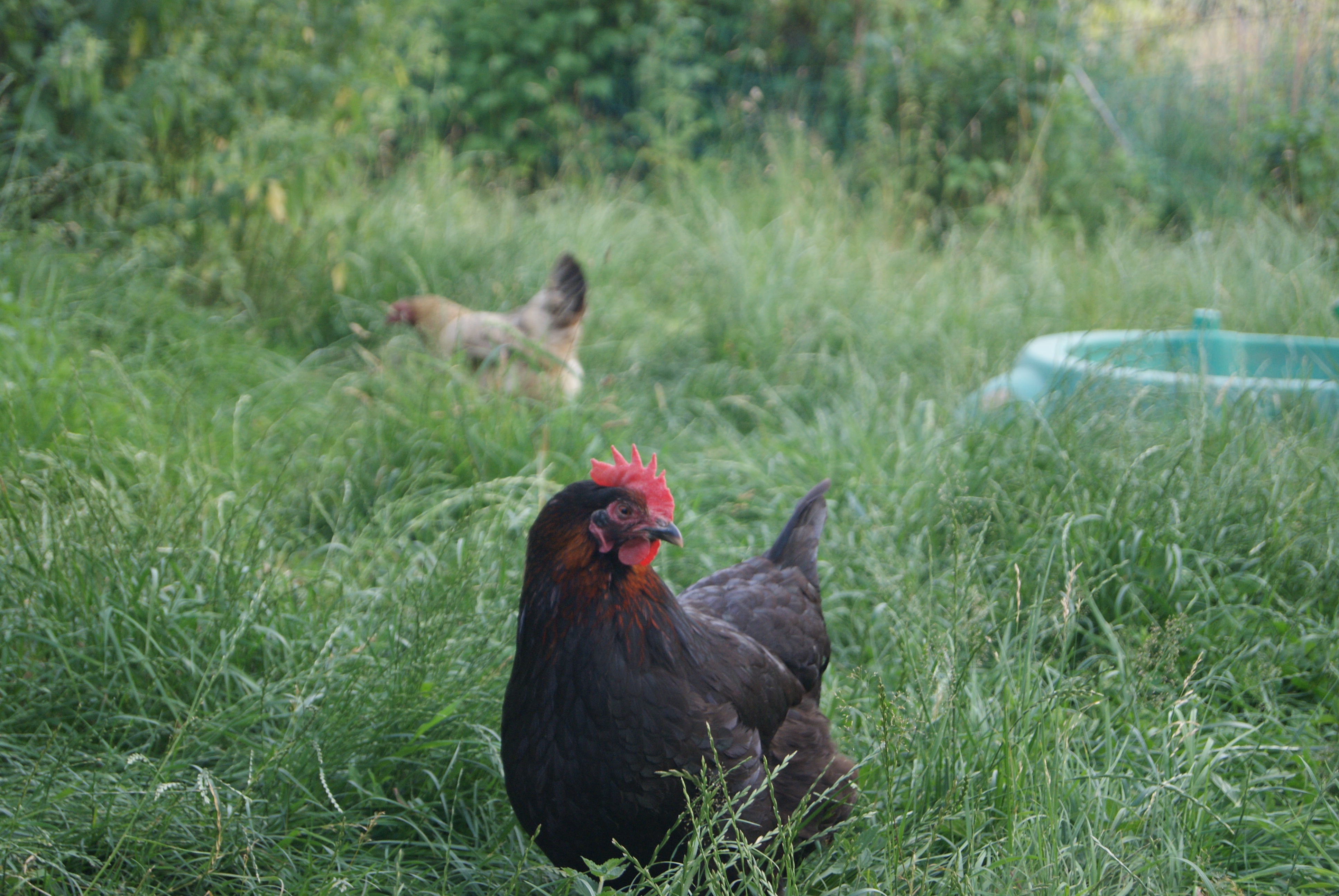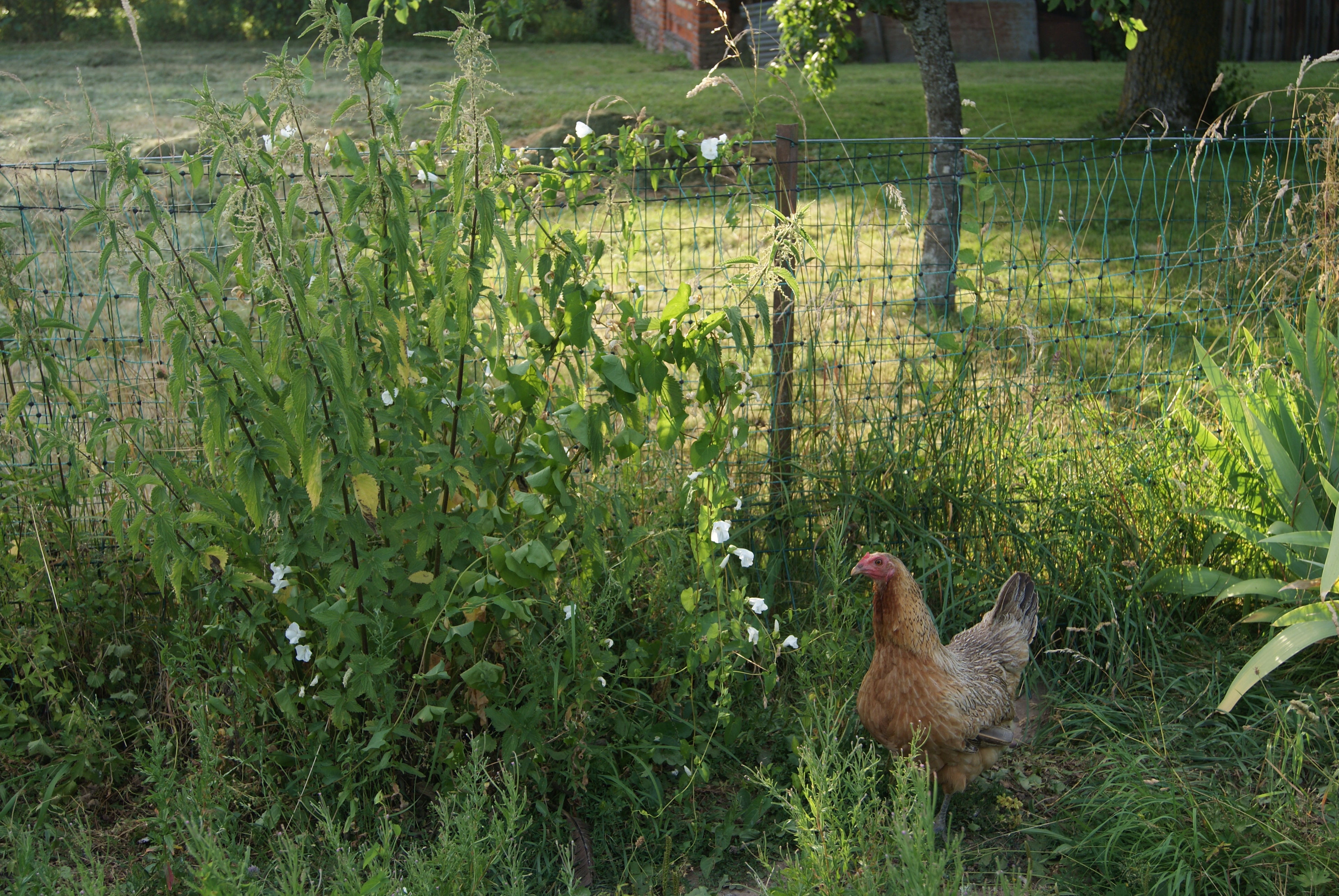 Les anciens propriétaires, dont le Monsieur collectionnait les poules et canards pour participer à des concours, ont eu la gentillesse de nous laisser 4 poulettes au sein du poulailler existant.