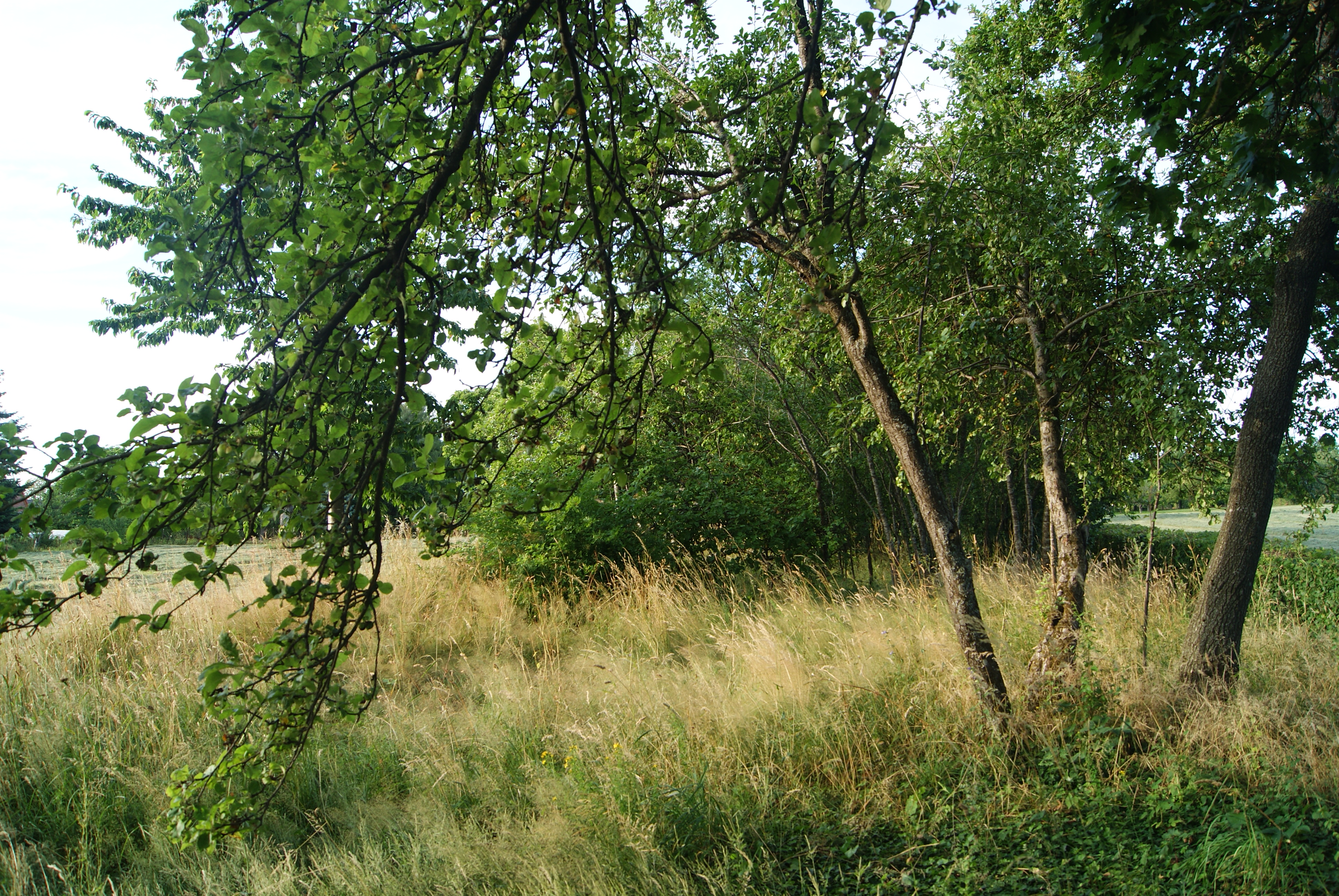 Quelques arbres sont déjà implantés et assez âgés sur le site, mais les anciens propriétaires ont fortement déboisé pour augmenter la surface de prairie et diminuer l’entretien; si bien qu’il ne reste que quelques arbres fruitiers et un petit verger.